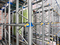 Conocidas como estanterías Drive-In o Drive-Through, estas estructuras maximizan el espacio de almacenamiento al permitir que los palets se apilen en profundidad. Este sistema es ideal para productos de alta rotación o grandes volúmenes de una misma referencia, optimizando el espacio en almacenes donde no es necesario el acceso directo a cada palet.